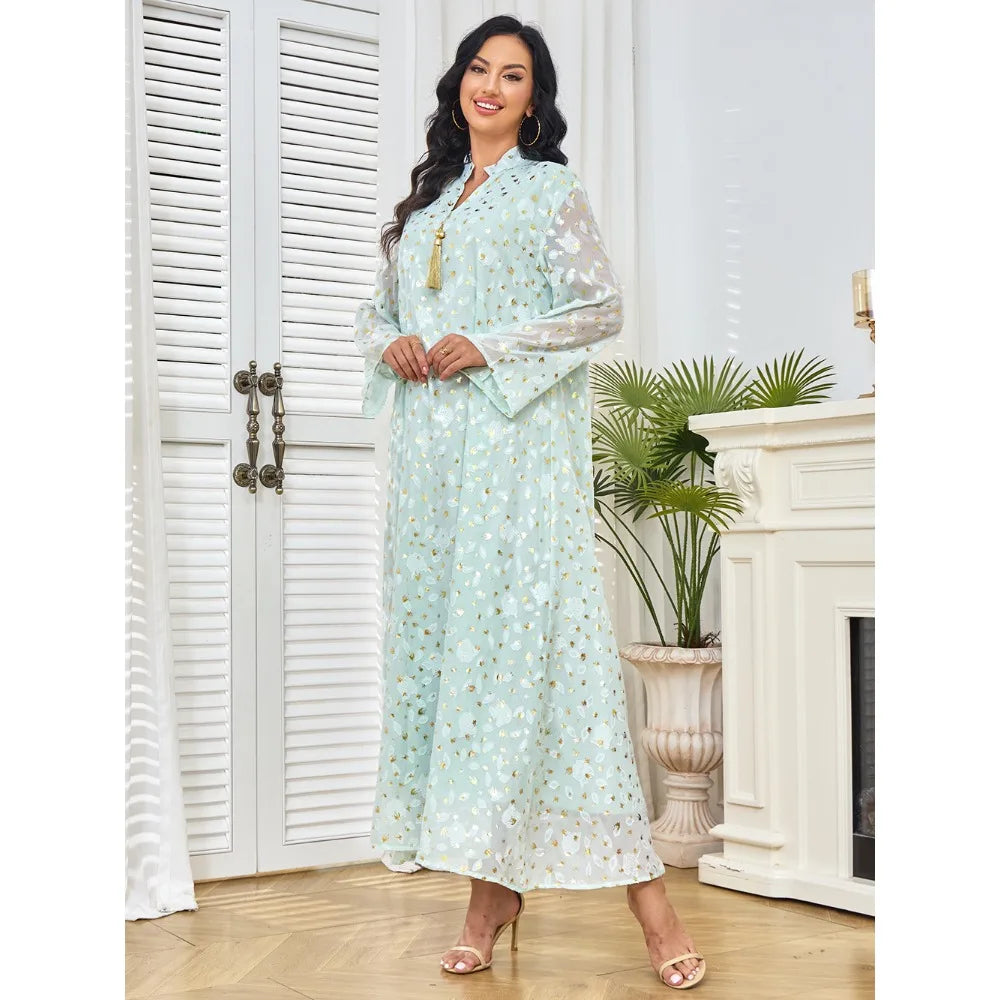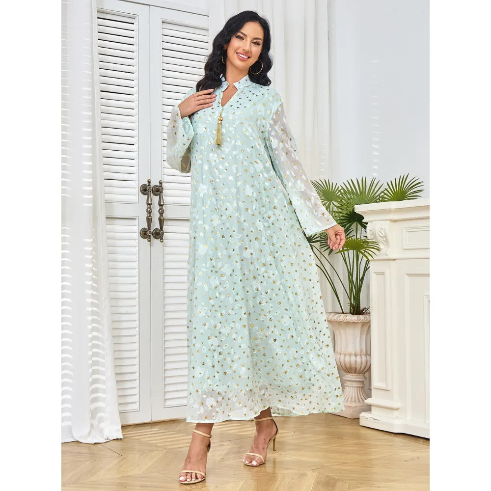 Inspired by the refined style of Dubai and the grandeur of Turkish gala nights, the Aurora Majesté is perfect for exclusive events, Ramadan celebrations, elegant dinners, and prestigious parties. A true icon of luxury Arabic fashion in a contemporary version.